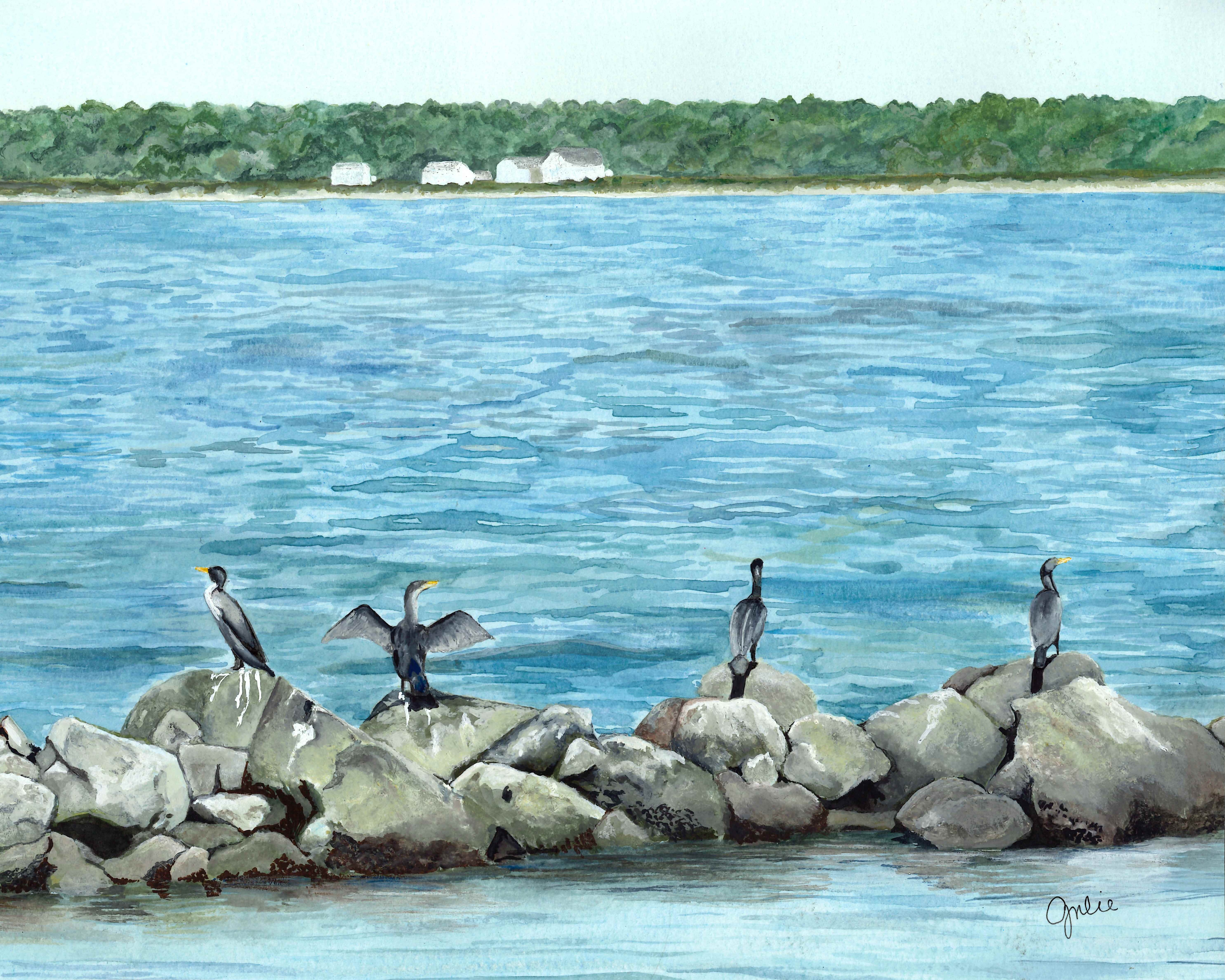 The Chesapeake Bay has long been an important stopover for migrating cormorants traveling between southern wintering grounds along the U.S. coast and northern breeding colonies in New England, the Canadian Maritimes, including Newfoundland. Peak migration periods occur in spring when they’re heading north (March through May) and fall when they’re heading south (August through November), when the Bay's fish populations provide plentiful fuel for their journeys. The birds do not all breed at once at a colony, and this staggered nesting over a couple of months means young are at various stages of development at any given time, with families not migrating together, creating the prolonged migration periods we observe.