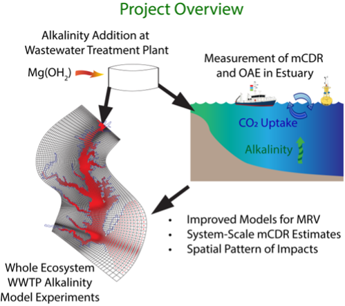 This research is part of a global effort to find new ways to remove carbon dioxide from the atmosphere and combat climate change. Manipulating wastewater treatment plant procedures and discharge to enhance carbon removal is a practical way to do this because of the current readiness of infrastructure in these plants to deliver alkalinity to the coastal ocean. Many wastewater facilities already add alkalinity to enhance treatment performance, permits to allow alkalinity discharge already exist, and there are several known technologies that can increase alkalinity in wastewater streams.