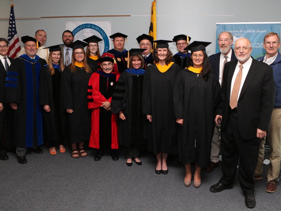 Thirteen students received joint degrees from the University of Maryland Center for Environmental Science and the University of Maryland College Park. This year, UMCES received accreditation from the Middle States Commission on Higher Education. The accreditation and earlier approvals by the General Assembly and the University System of Maryland Board of Regents authorize UMCES to award joint graduate degrees with the University of Maryland.